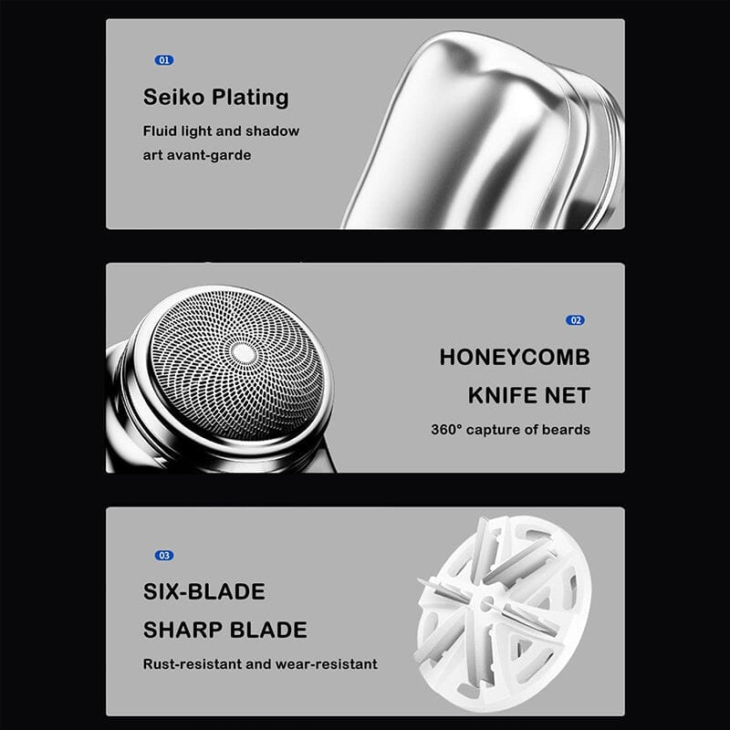 - ▶Better shave: 15-blade sharp stainless steel turbo blades, professionally make hard beards, 0.1mm thin stainless steel foil, double ring 3D knife nets, increase shaving volume, floating arc surface is smooth and sticks to the skin, removes hair roots.
