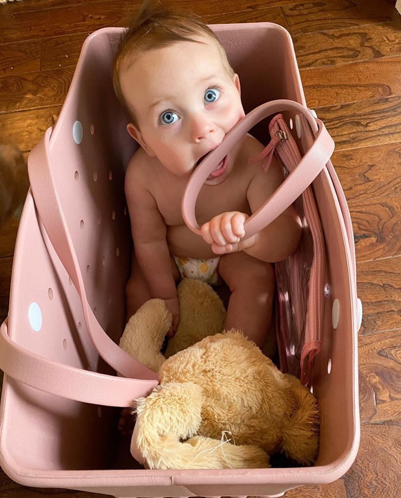 The Original Mummy Bag is our largest tote, stylish enough for a girl's weekend and large enough for family day at the beach!