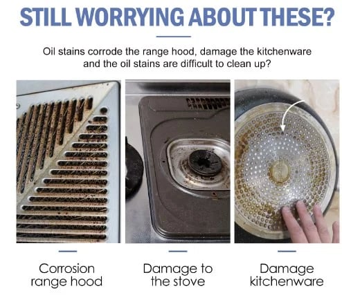 A practical cleaning tool to solve grease messes. Suitable for a wide range of surfaces in range hoods, pot bottoms, kitchen countertops, stoves, kitchen sinks, faucets, tile walls, floors, and so on.