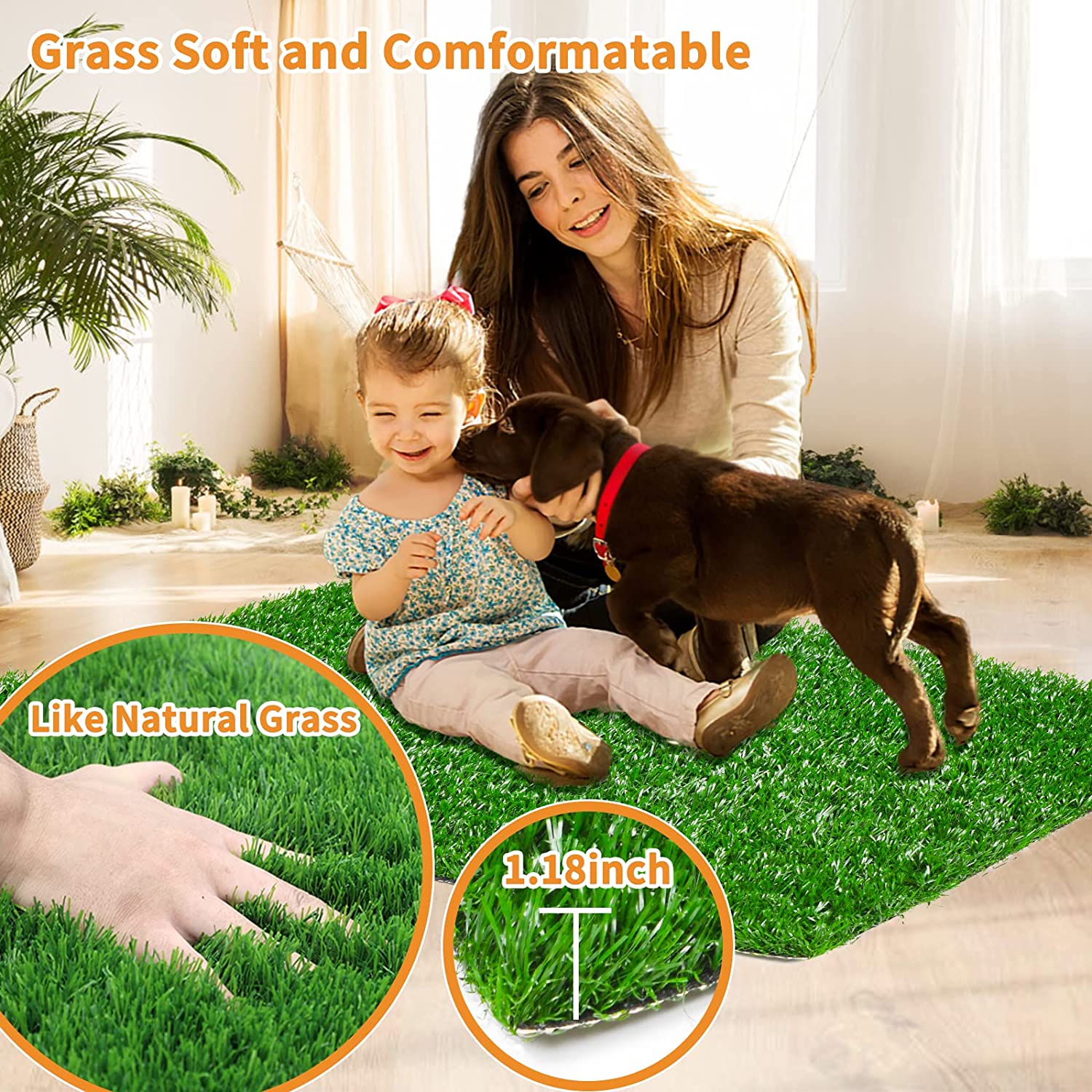 HIGH QUALITY MATERIAL:The dog grass pad's appearance and texture looks & feels like real grass.Dogs grass providing you with years