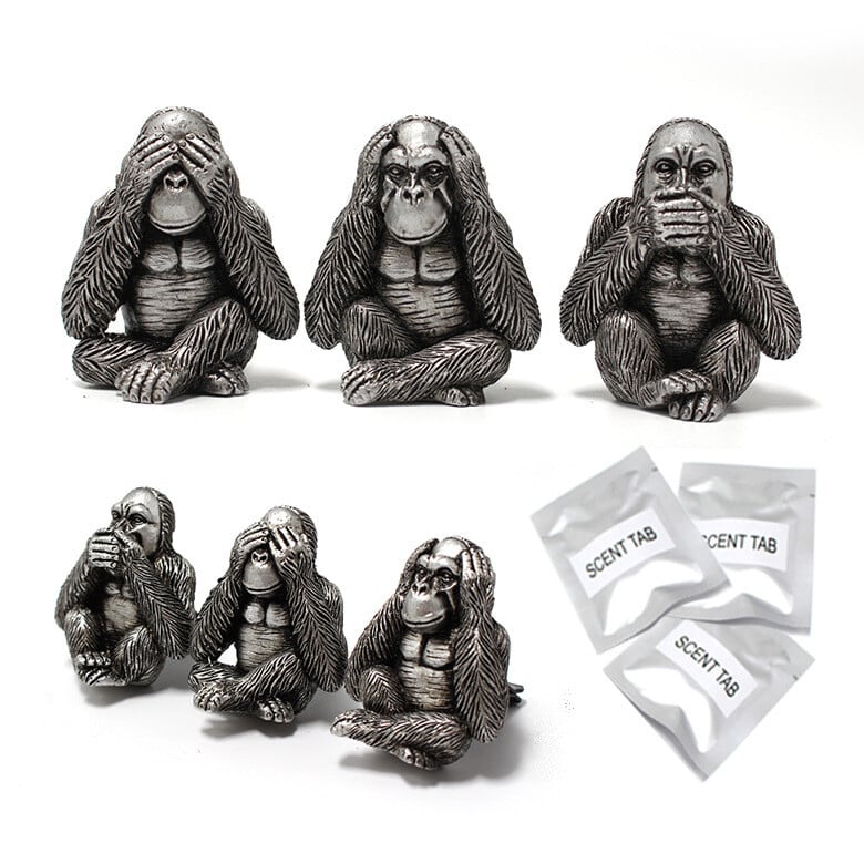 This twist on the classic see, hear, speak no evil is put together with skulls.Β It has the see no evil, hear no evil, speak no evil skulls, a cool twist on the classic monkeys.Β This skull piece is a must have for anyone that is into skulls.