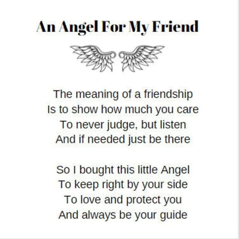 ❤️This keychain comes attached to a card with the saying: The meaning of a friendship Is to show how much you care To never judge, but listen And if needed just be there. So I bought this little Angel To keep right by your side To love and protect you And always be your guide.