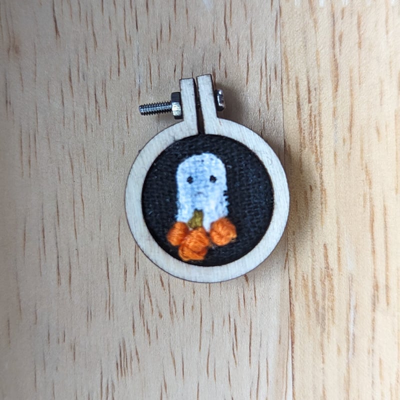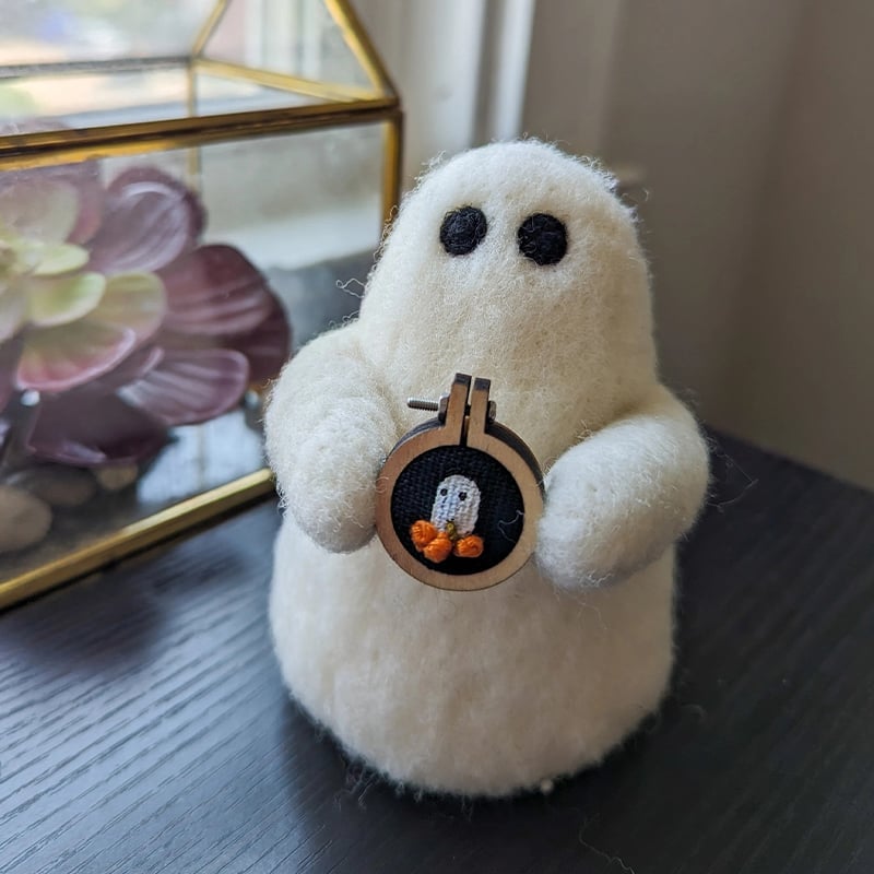 - 1*Halloween Wool Felted Ghost Holding a Tiny Embroidery Hoop
