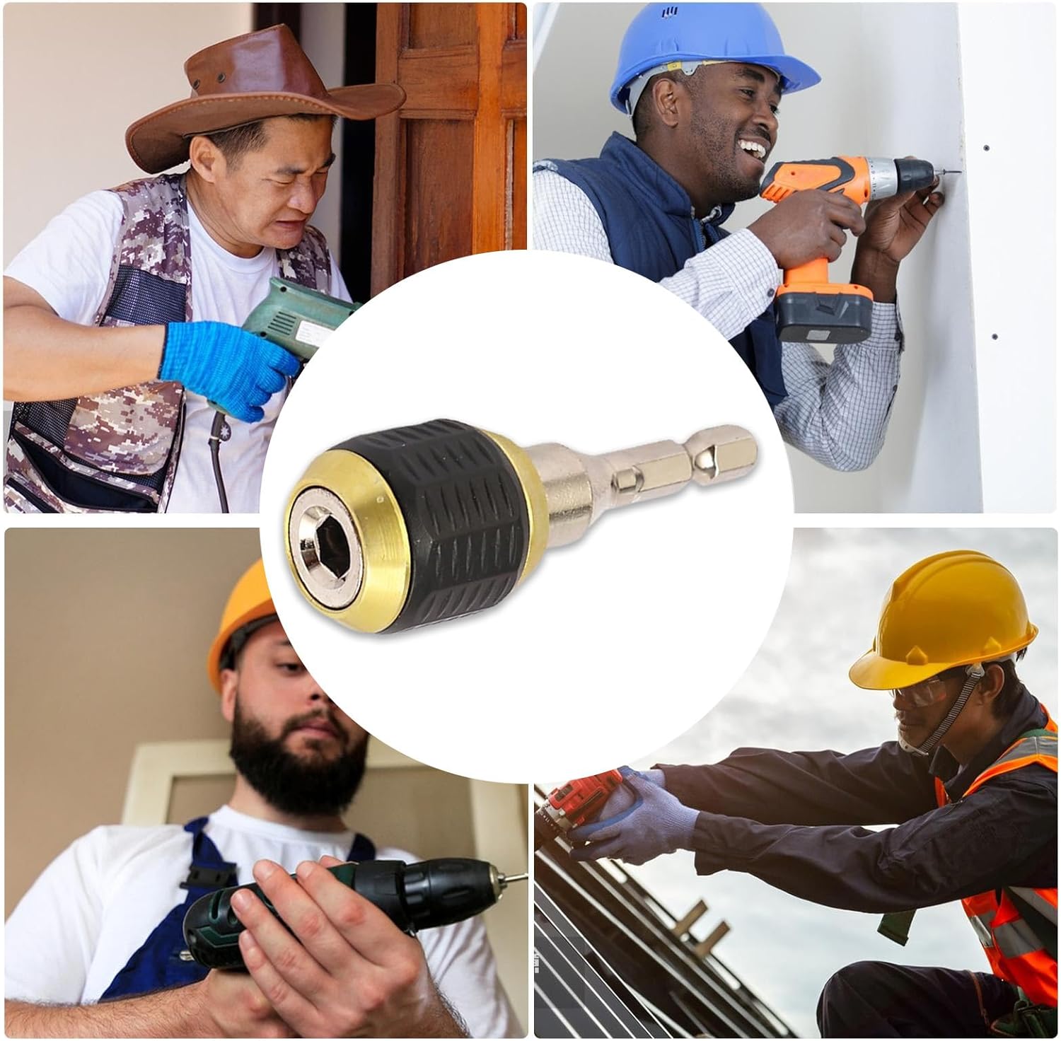 【Simple To Installation】Quick release chuck drill connection adapter is very easy to use and requires only a few steps to complete: 1. Pull down the self-locking head; 2. Put the bit in; 3. Loosen and the self-locking sleeve will automatically return to its original position.