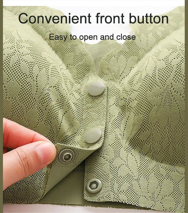 Plus Size Jacquard Lace Button Front Comfy Bra (Four piece set)