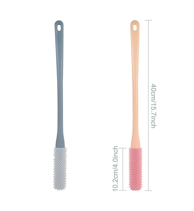 Silicone soft brush: The long handle foot scrubber brush head was Silicone,is safe and tasteless Materials.handle is made of plastic, it is durable and strong,antiskid, waterproof, moisture-proof.The long handle and soft Silicone make it the perfect tool for cleaning your feet and toe.