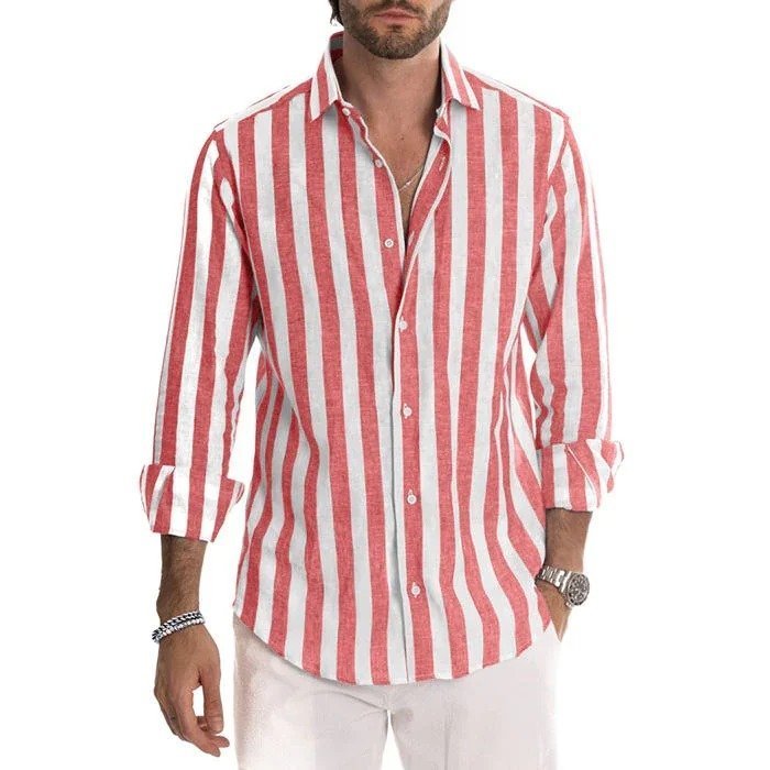 - Package Contains: 1 X Men's Cotton Linen Striped Button Down Long Sleeve