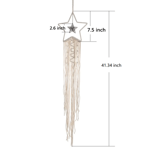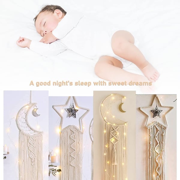 [Material]ย Wall hanging is made of cotton rope rope, sturdy, durable and high -quality, metal stars and moon colics, hollowed out moon and stars.