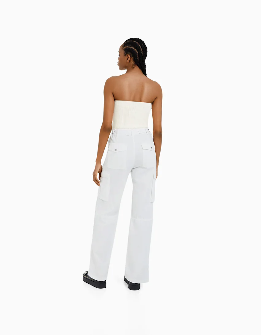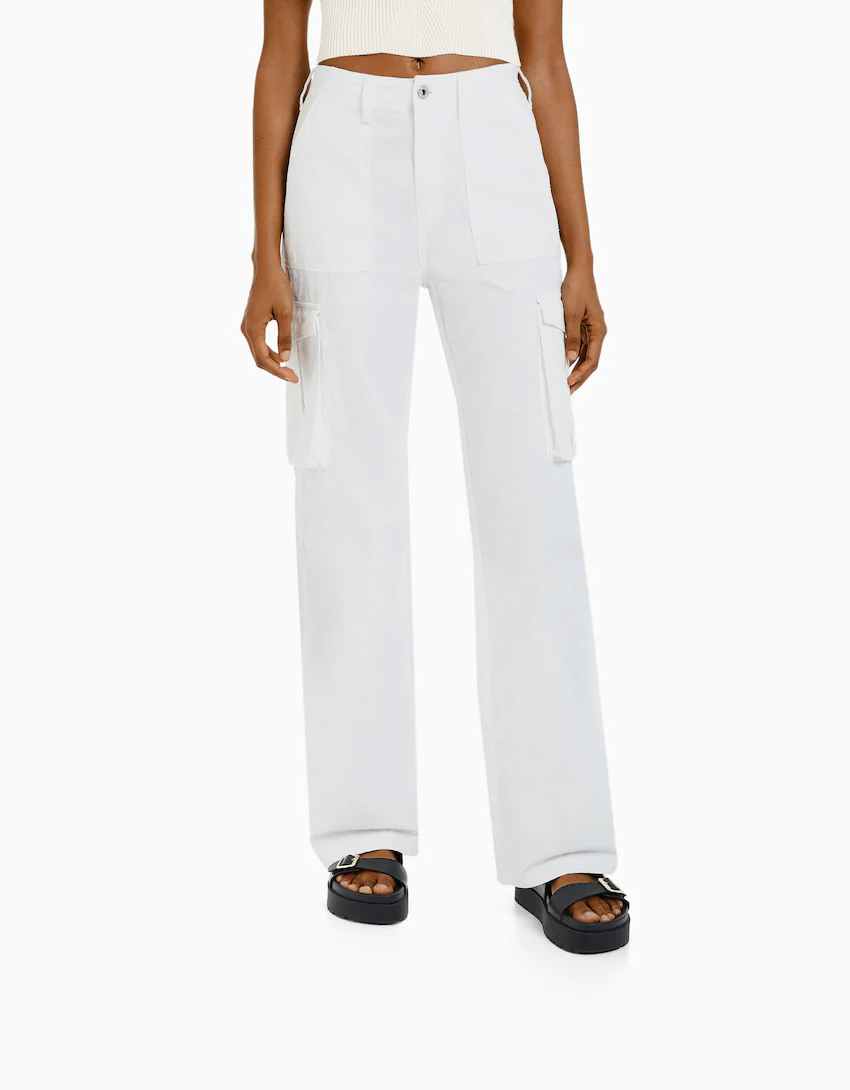No matter the occasion, these curve hugging cargo jeans are an absolute go-to. These jeans look great with a t shirt and sneakers for a casual look or dress them up with a cute crop top and heels for a going out look.