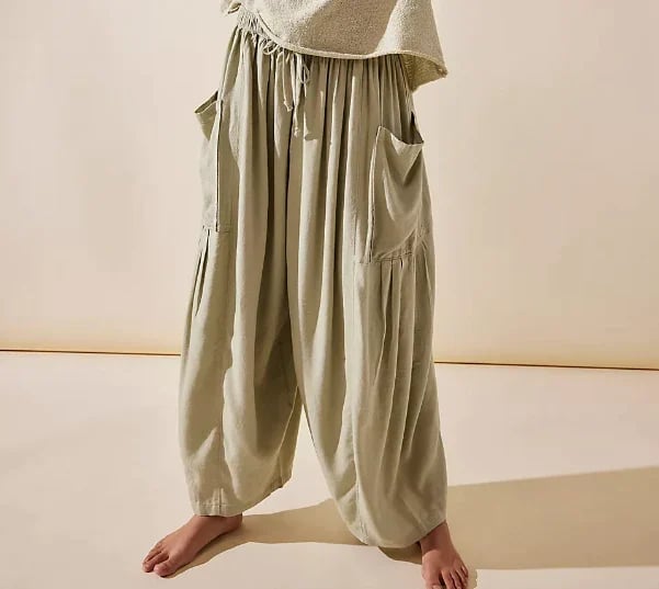 This newest go-to summer pants, featured in a billowy, harem-inspired silhouette with dropped side pockets for added dimension.