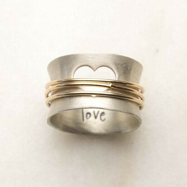 💕This Silver Retro Love Heart Ring Reminds you that you have the power to attract joy, love and peace wherever you go.😊