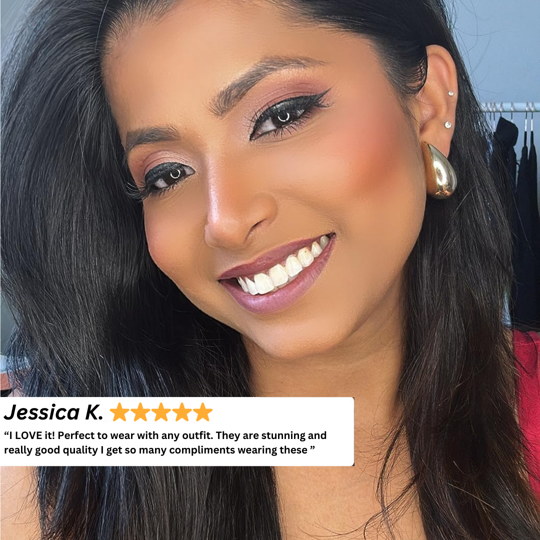 Enter the world of luxury and striking sophistication with our Gold or Silver Plated Teardrop Earrings, a perfect blend of contemporary style and enduring allure. With their thick design they're sure to catch everyone's attention. These stunning earrings are crafted to leave a lasting impression, enchanting anyone who gazes upon them with their lavish charm and irresistible appeal. These glossy teardrop earrings are a perfect blend of elegance and uniqueness. They are lightweight, nickel free, and hypoallergenic.