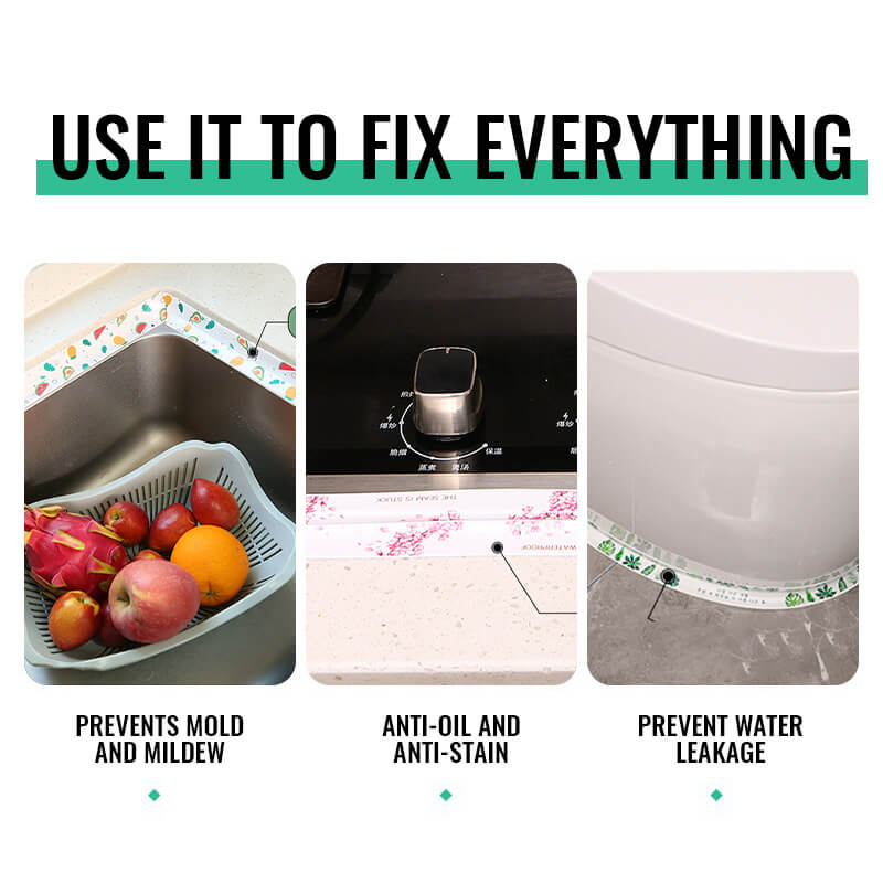 Re-caulking your shower, toilet, wall and kitchen sink doesn't have to be a pain. Our new Self-Adhesive Sealing Caulk Tape Strip is designed to provide seamless caulking and flush seal without the usual mess of caulking. It's made of premium water-proof, mold-proof PVC material that prevents water from entering seams and keeps your bathroom, kitchen, or bathtub clean, tidy, and mold-free.