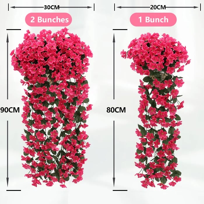 - Each Vine has 18 forks with many flowers and leaves, Hang down is 5 bunches of flower vines.
